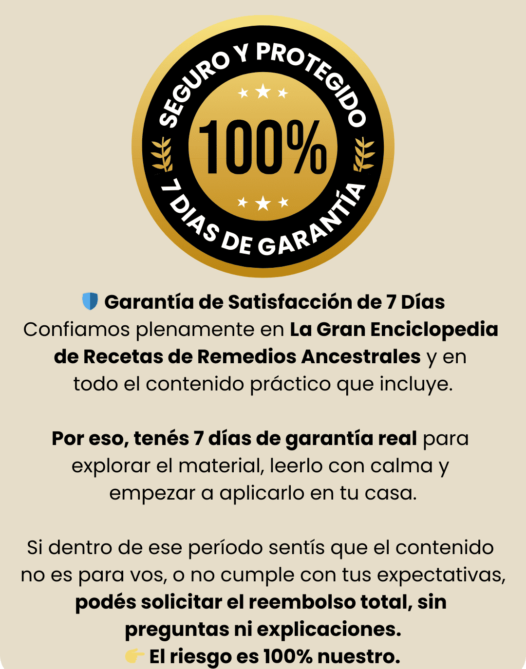 Si el contenido no es para vos o no cumple tus expectativas, podés solicitar el reembolso total, sin explicaciones ni preguntas.